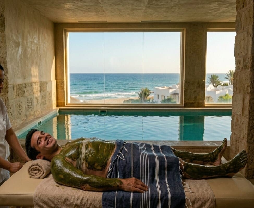 Day 1: The Portal of Arrival. Soft landing, "Heart-to-Heart" connection, and shared breath. Evening Thalasso: Heated seawater pools to wash away your social masks.